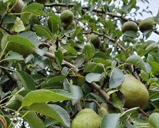 LeConte: Not self-fruitful. (Use Kieffer as pollinator) Can be eaten from tree or stored. Consided to be a cross of Chinese sand pear and domestic pear. Flesh resembles Asian pears. Ripens late. 350 Chill hours.